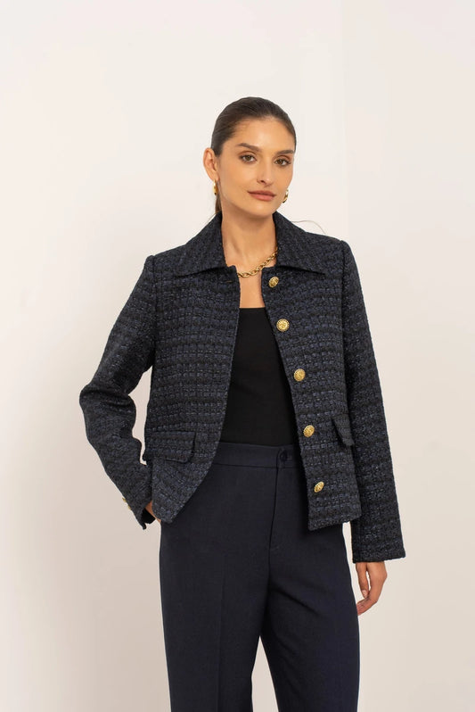 Eleganter Tweed-Blazer in Marineblau