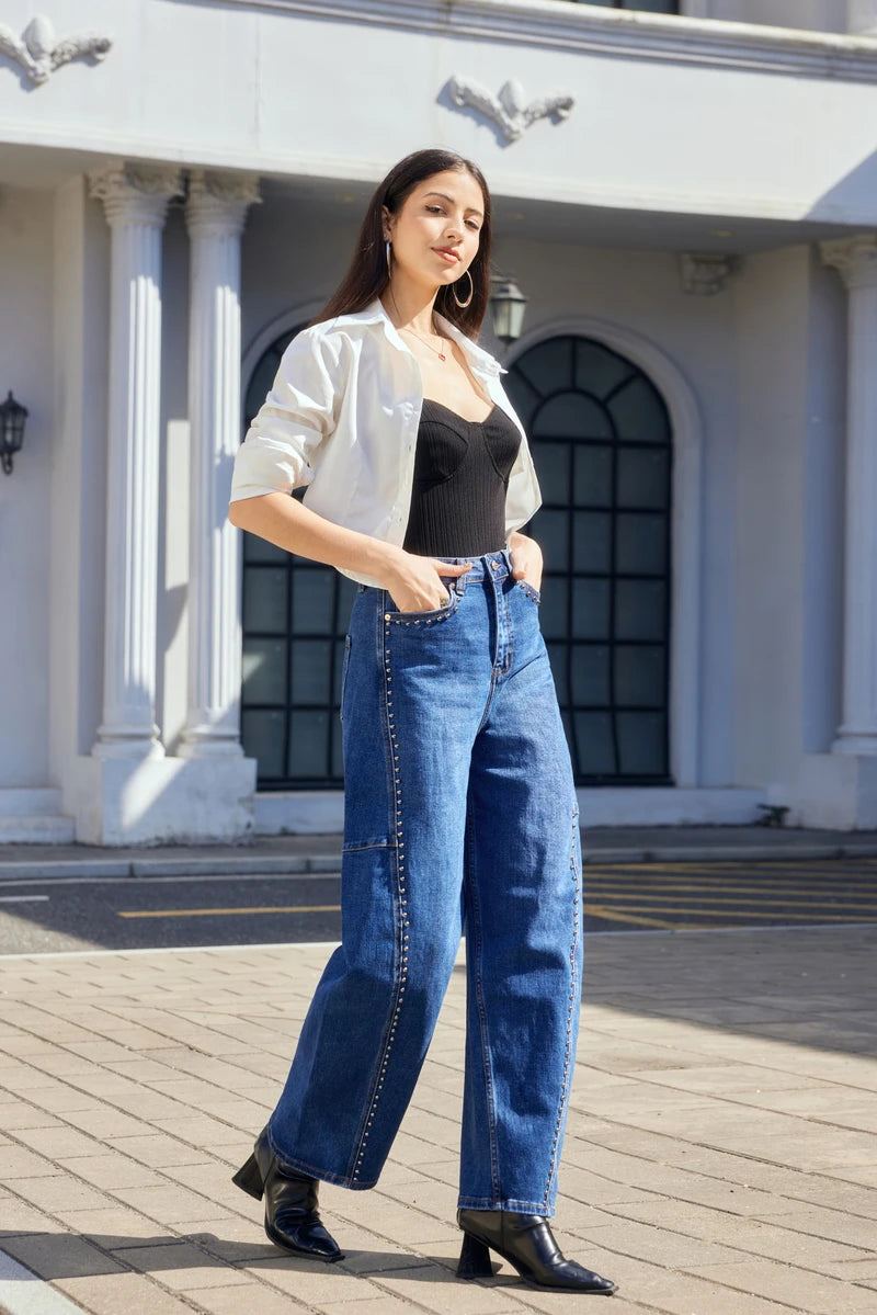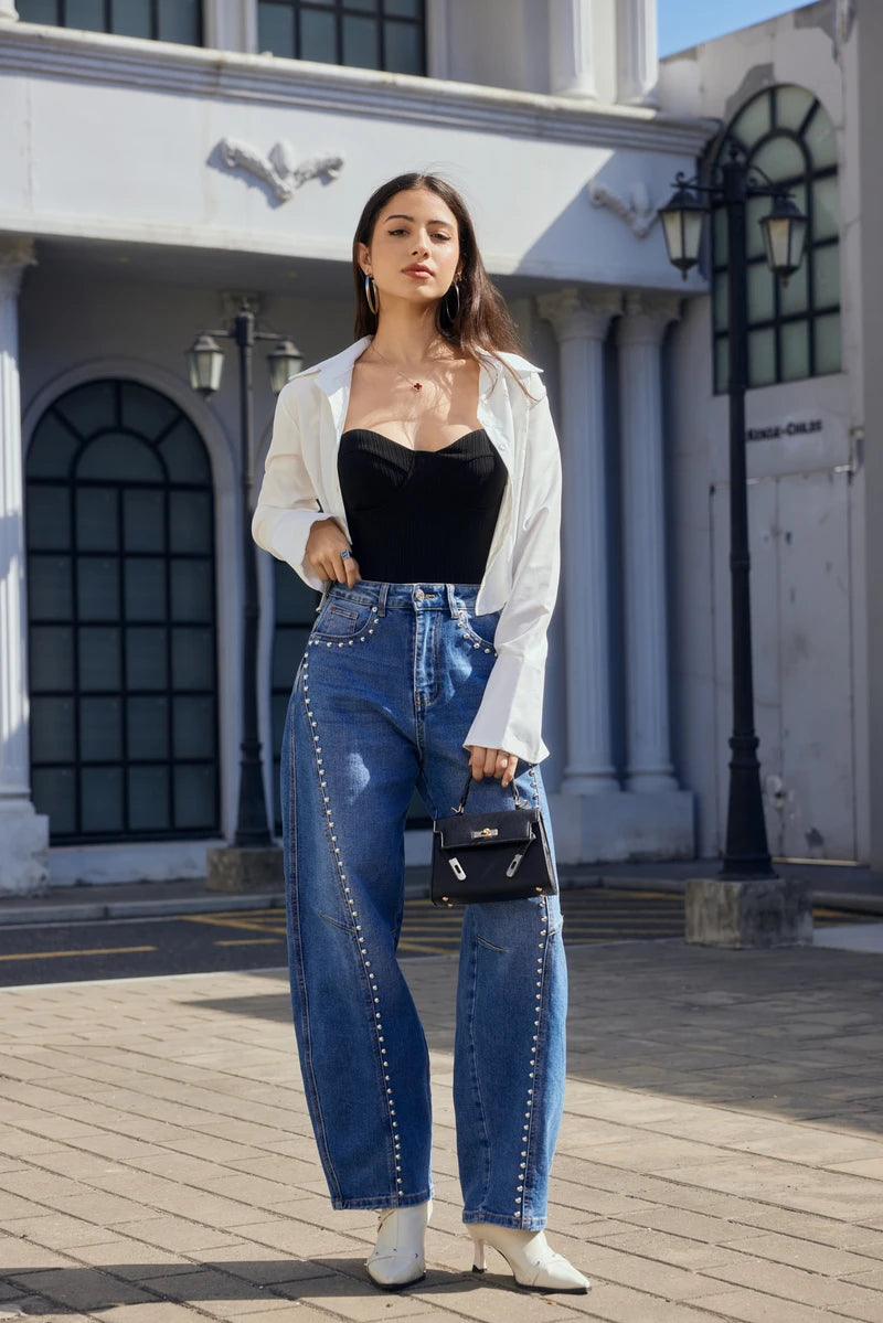 Balloon-Jeans mit Nieten-Details