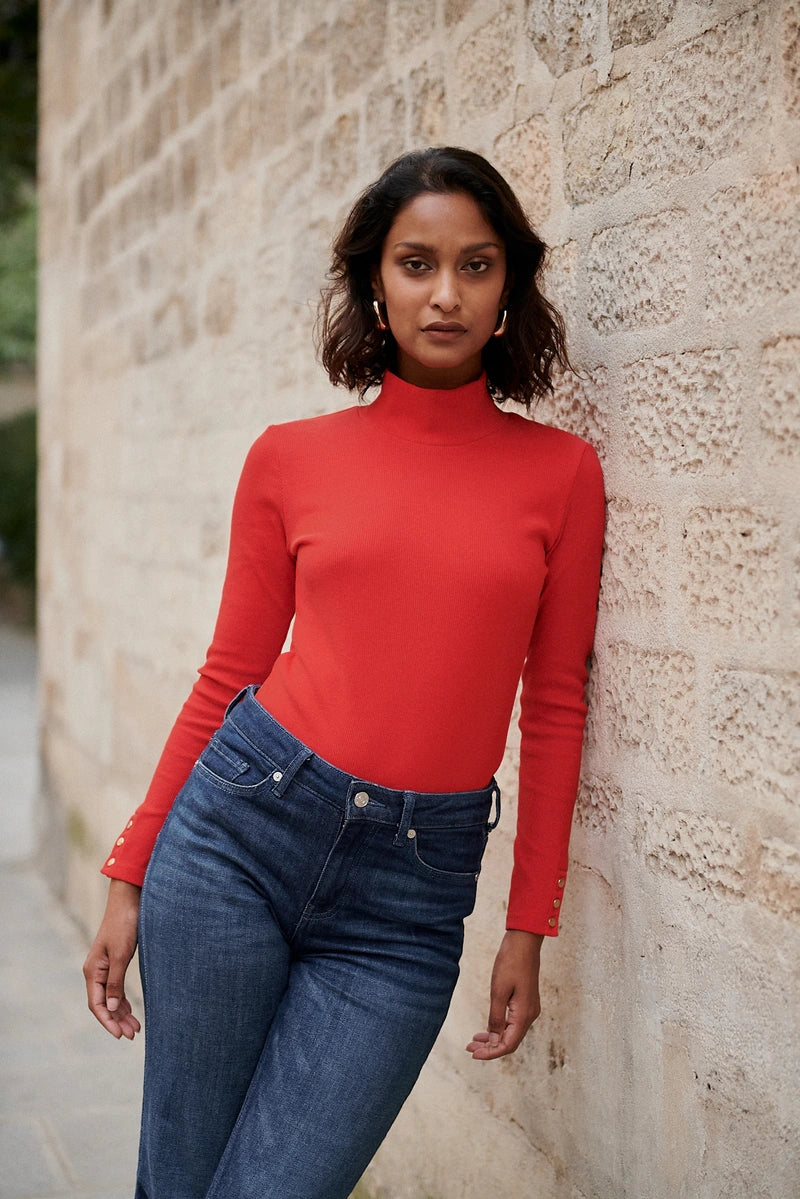 Figurbetontes Longsleeve mit Schmuckknöpfen