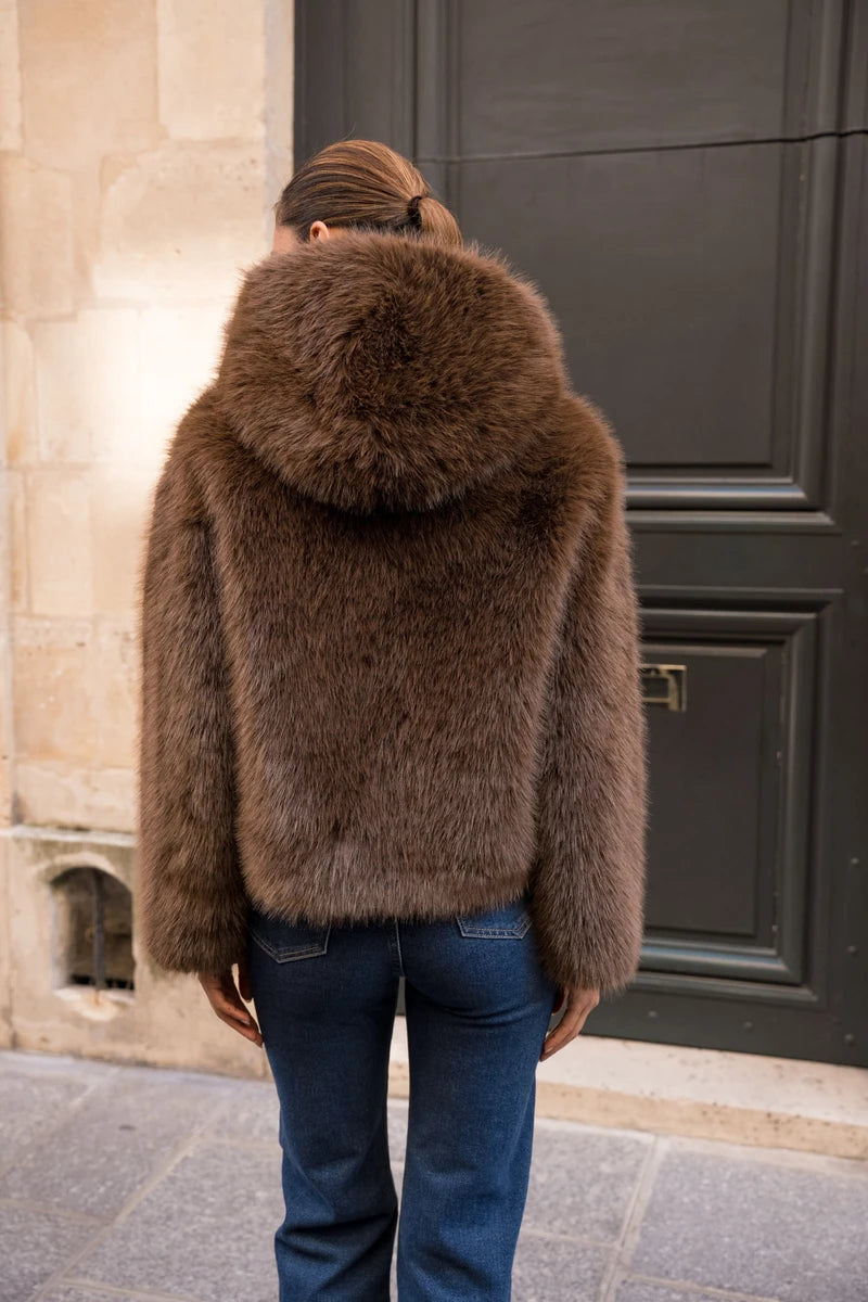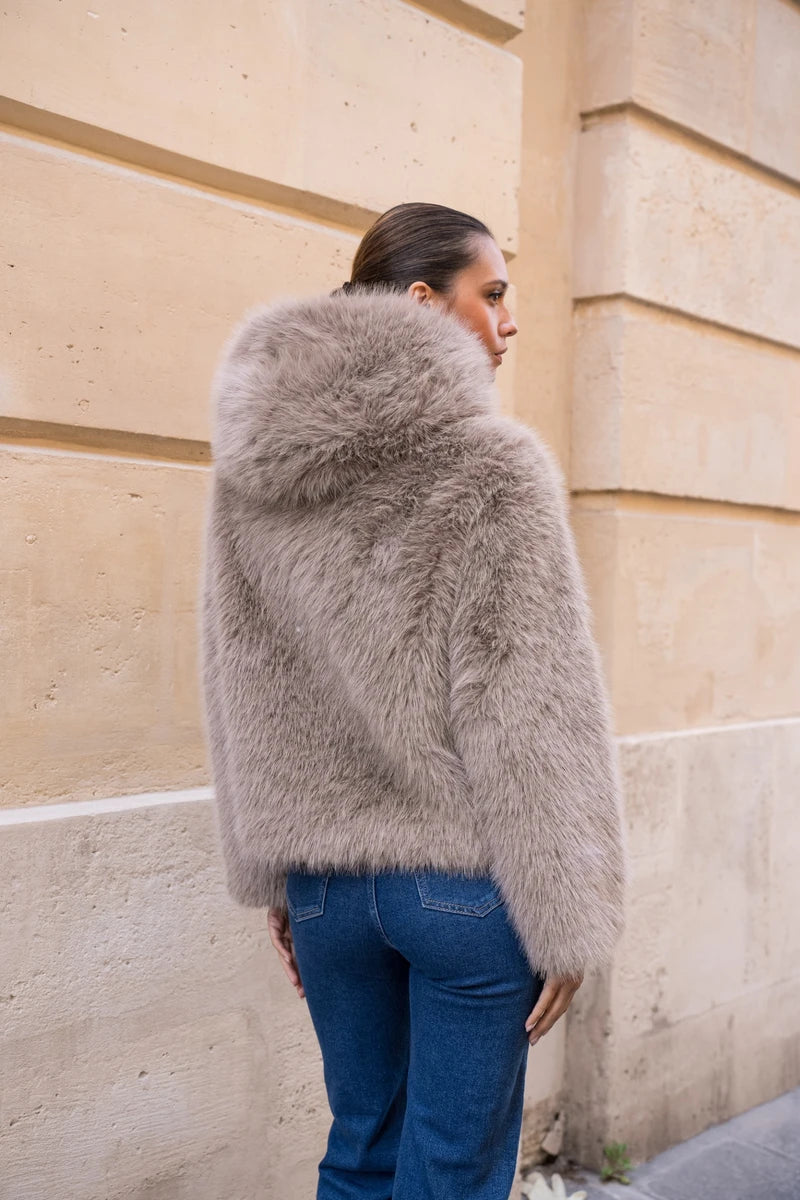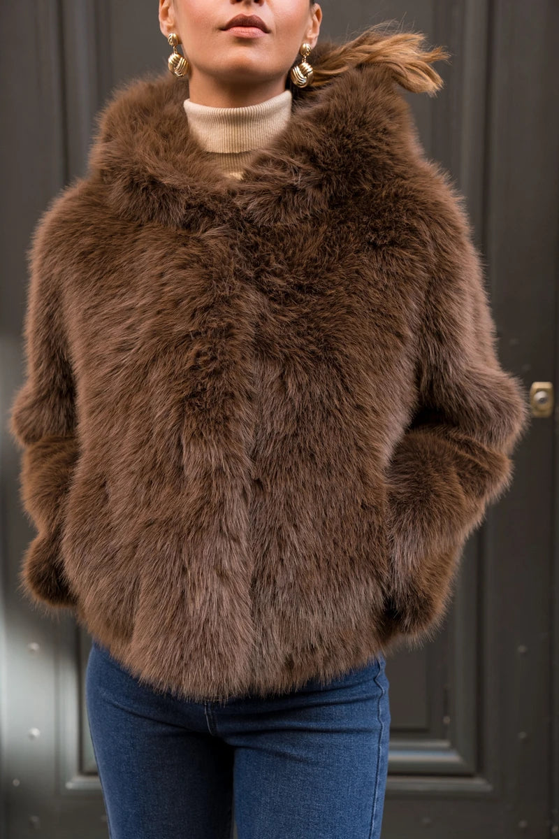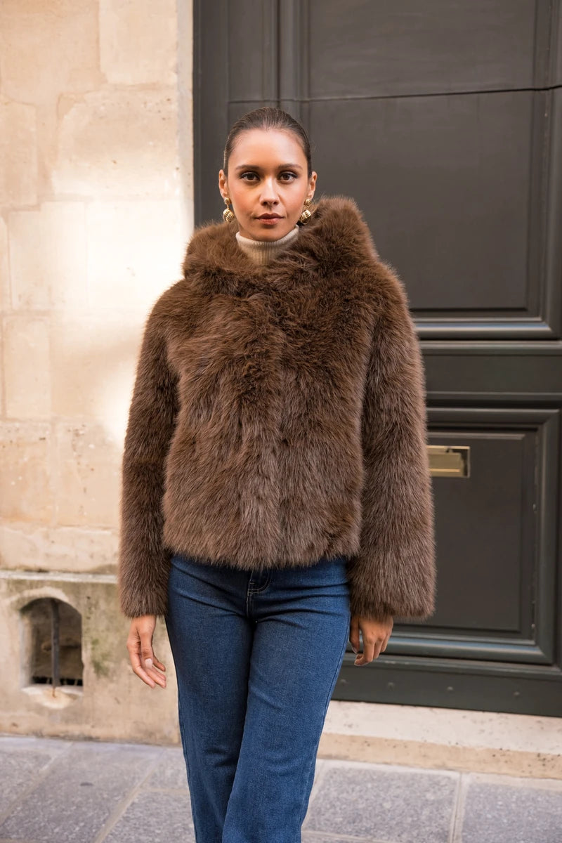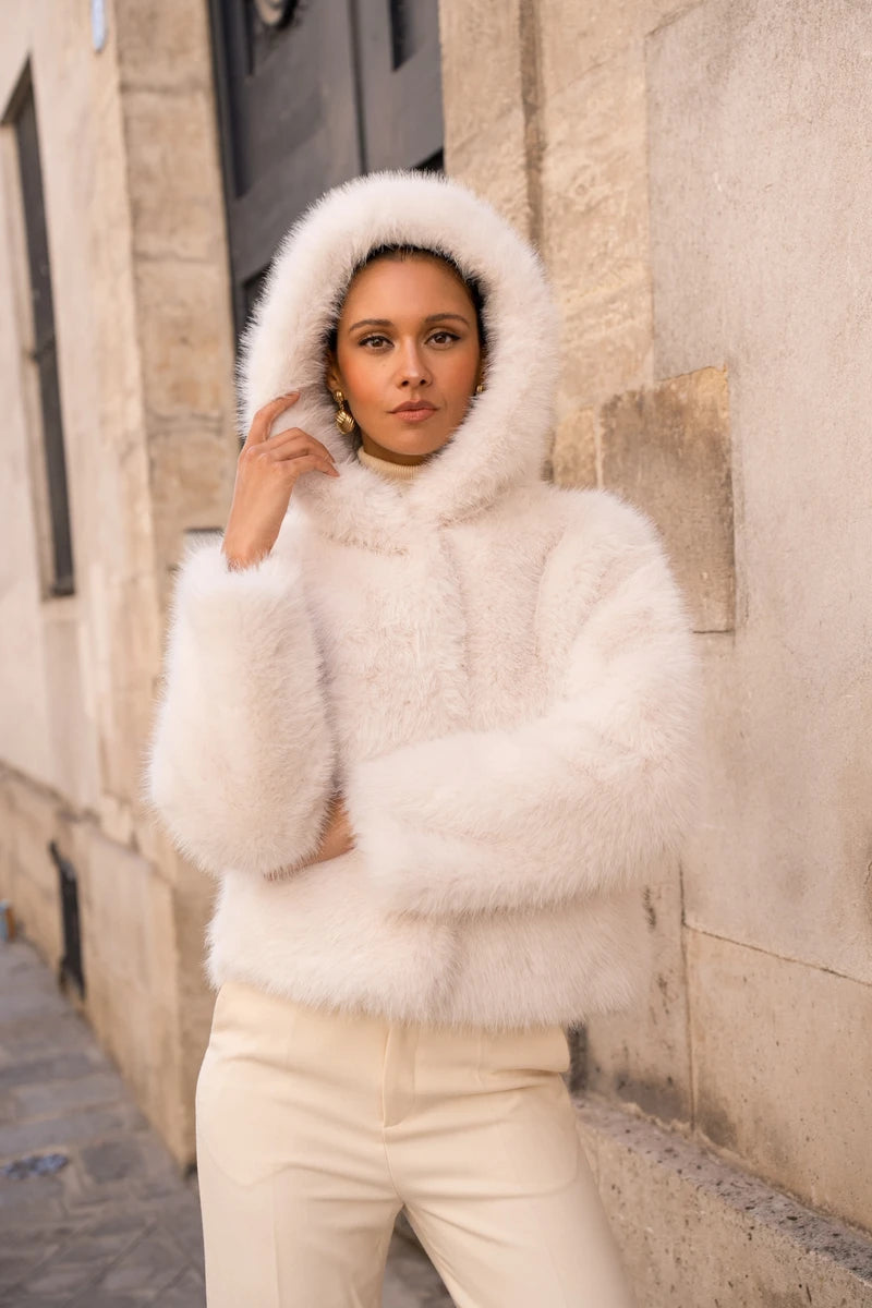 Setze auf Glamour und Komfort mit diesem kurzen Kunstpelzmantel. Die flauschige, langhaarige Textur und der weiche Griff machen ihn zum absoluten Liebling. Der leicht lockere Schnitt, die große Kapuze und der diskrete Verschluss sorgen für einen mühelos schicken Look.