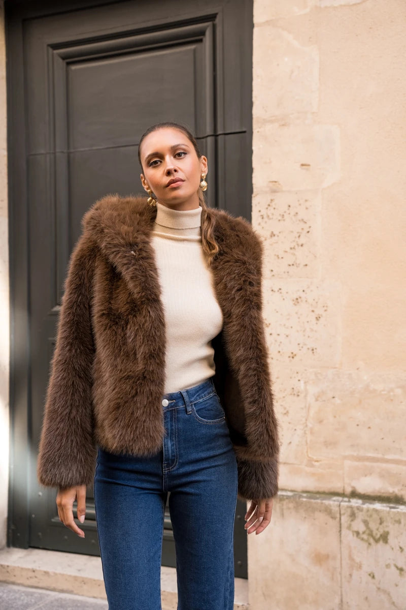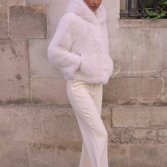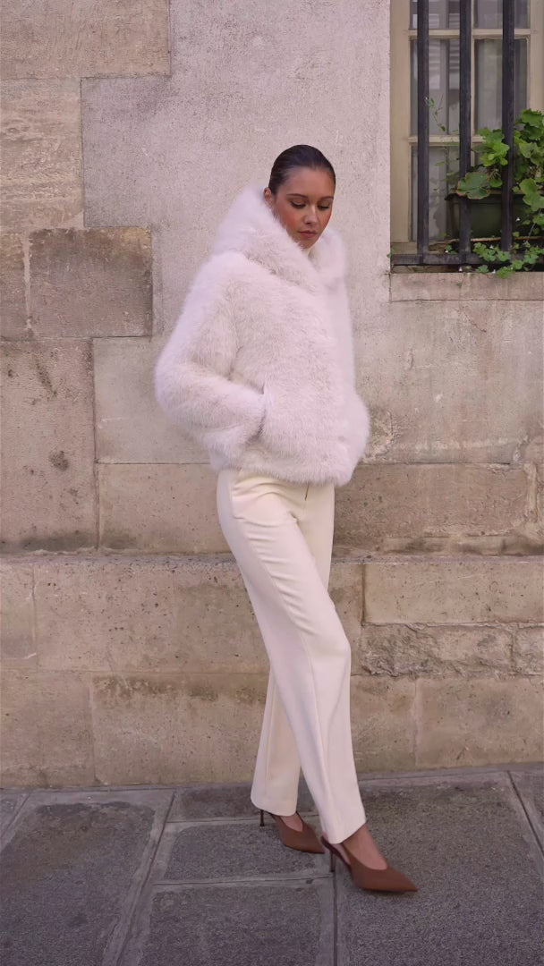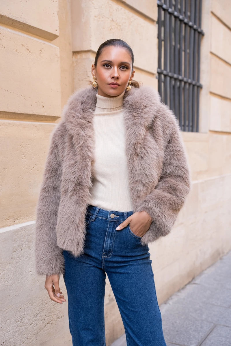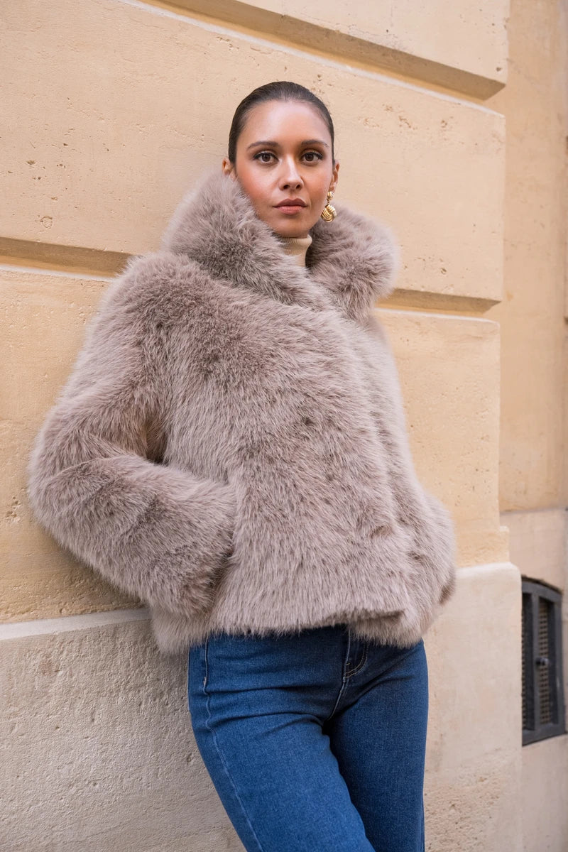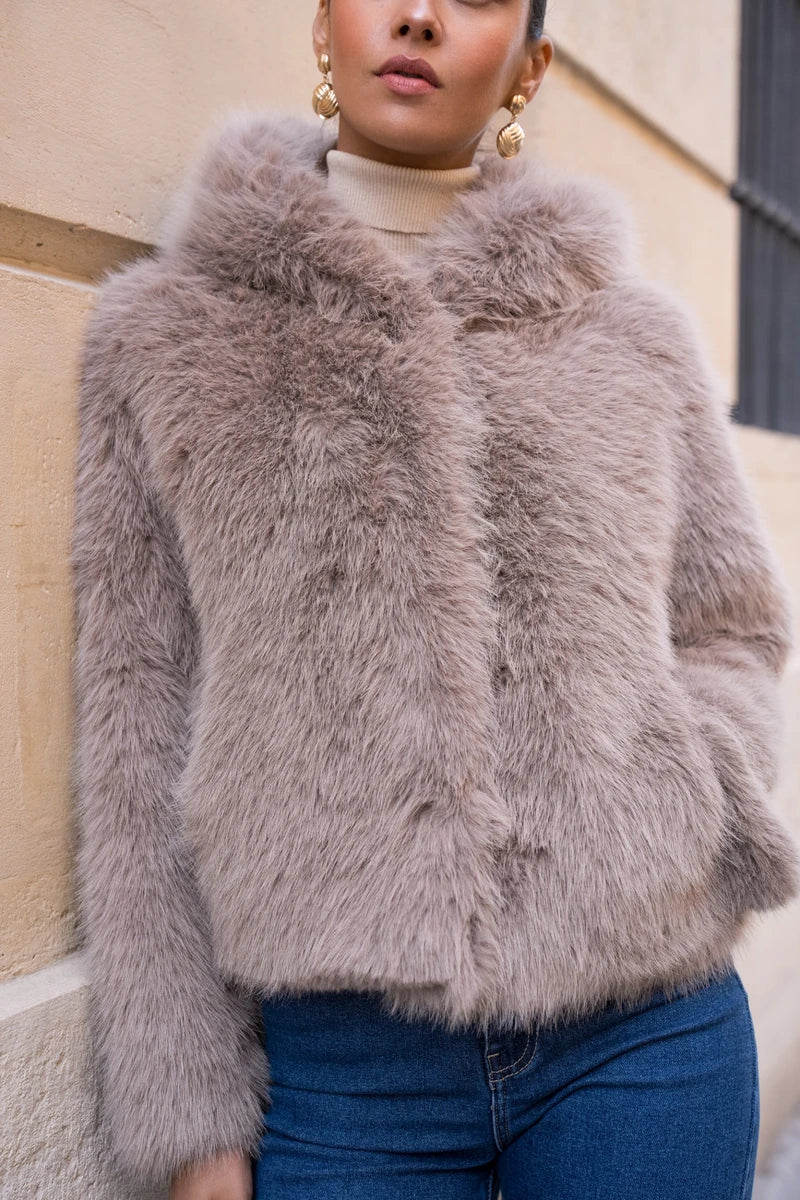Setze auf Glamour und Komfort mit diesem kurzen Kunstpelzmantel. Die flauschige, langhaarige Textur und der weiche Griff machen ihn zum absoluten Liebling. Der leicht lockere Schnitt, die große Kapuze und der diskrete Verschluss sorgen für einen mühelos schicken Look.