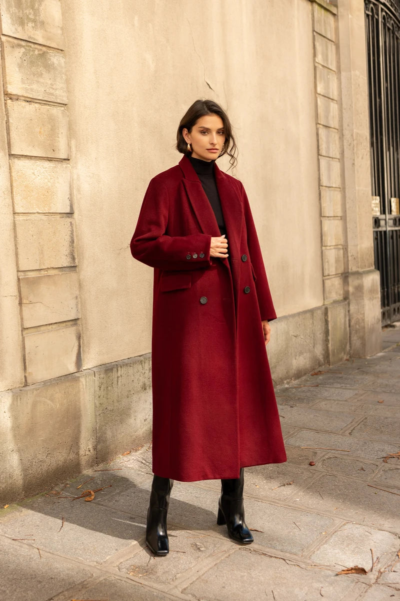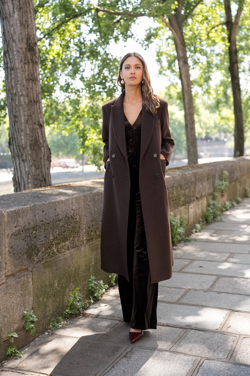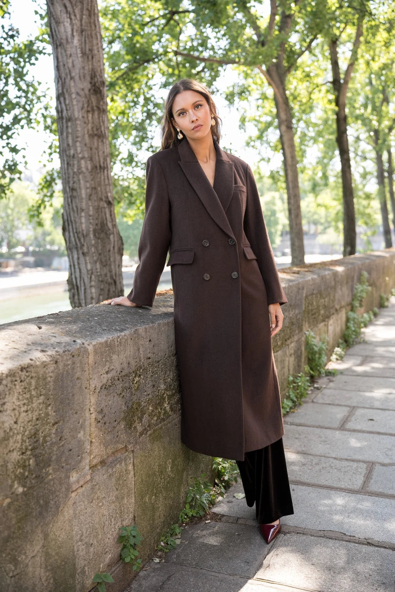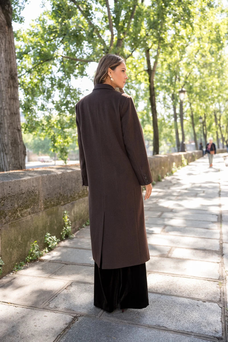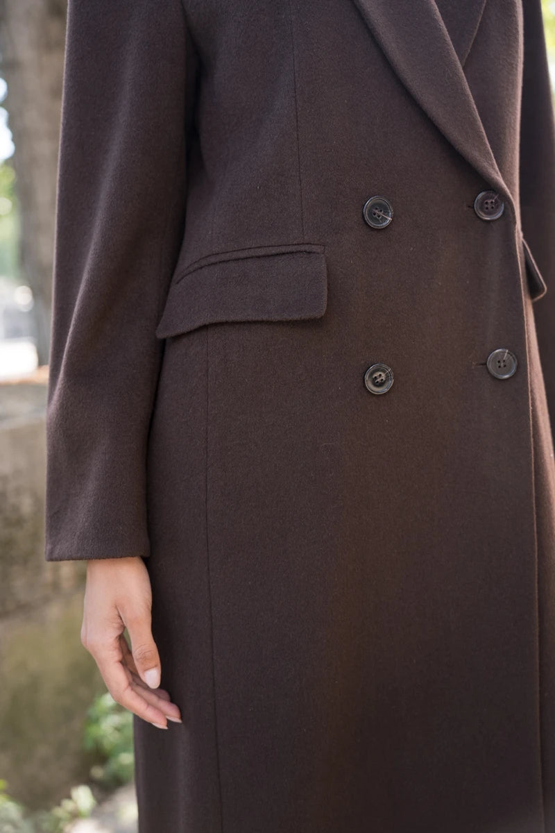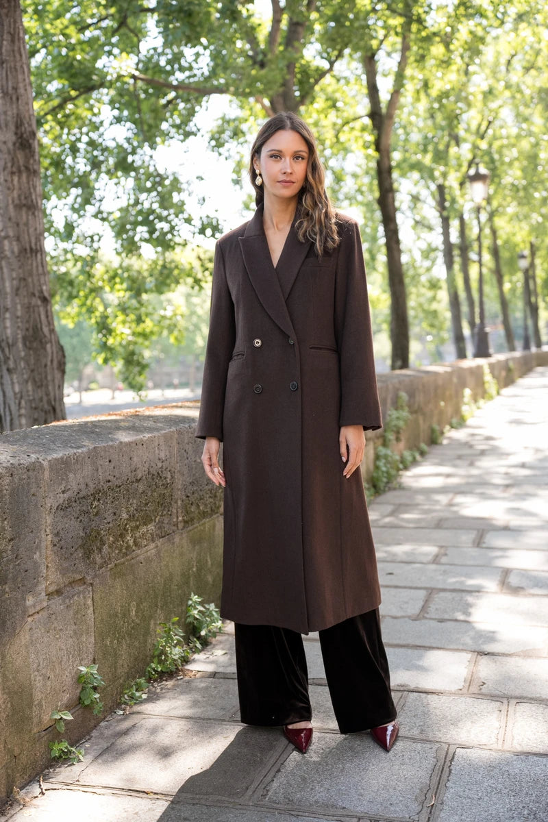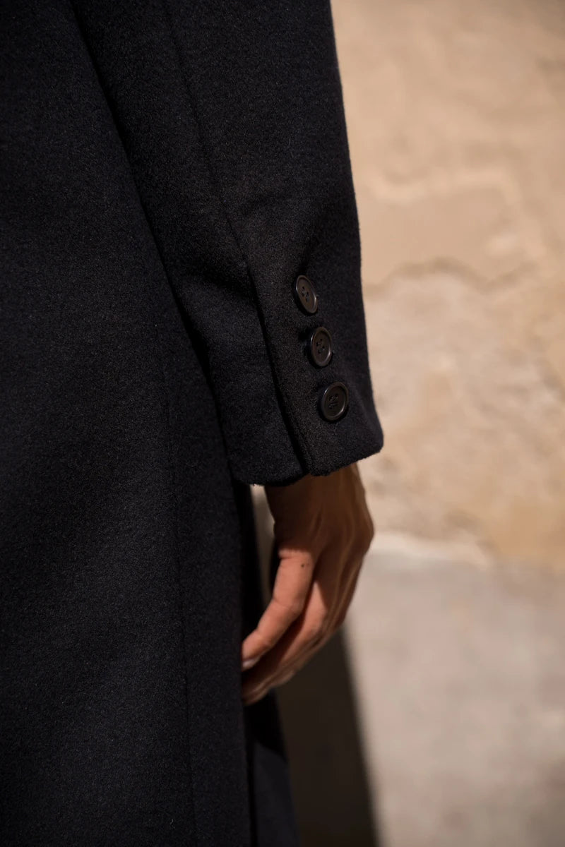 Ein Mantel mit geradem, strukturiertem Schnitt und markanten Schulterpolstern für eine souveräne Silhouette. Klassische Revers und der doppelreihige Knopfverschluss verleihen ihm zeitlose Eleganz. Aus einer hochwertigen Wollmischung gefertigt, kombiniert er wärmenden Komfort mit einem fließenden, anspruchsvollen Design. Perfekt für elegante Business-Looks oder stilvolle Alltagsoutfits.