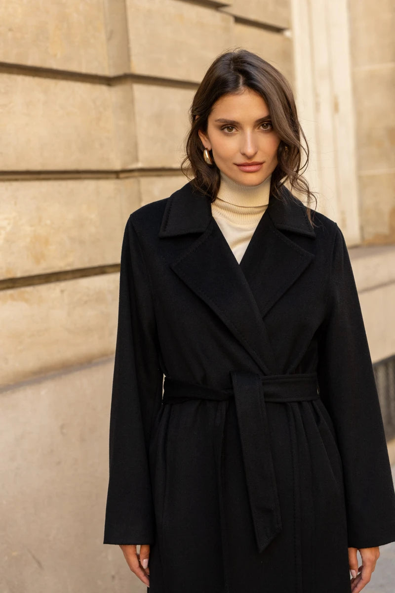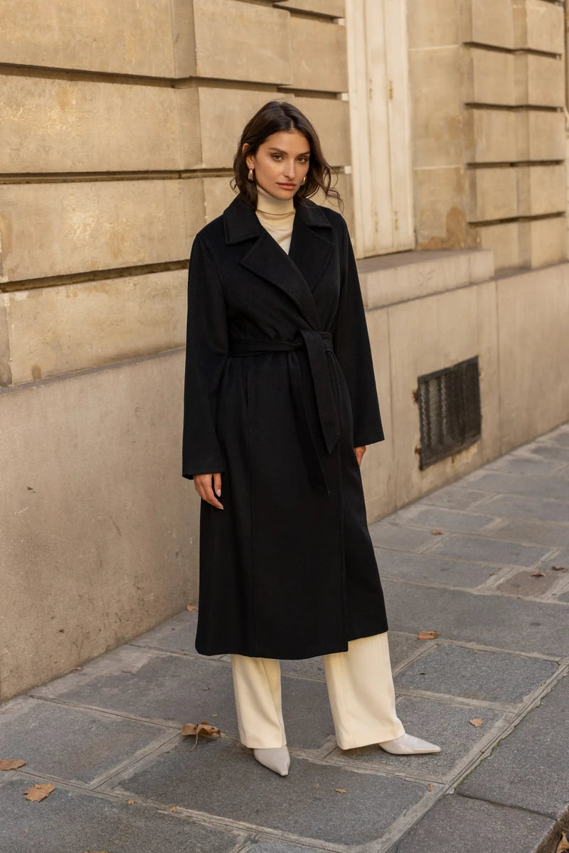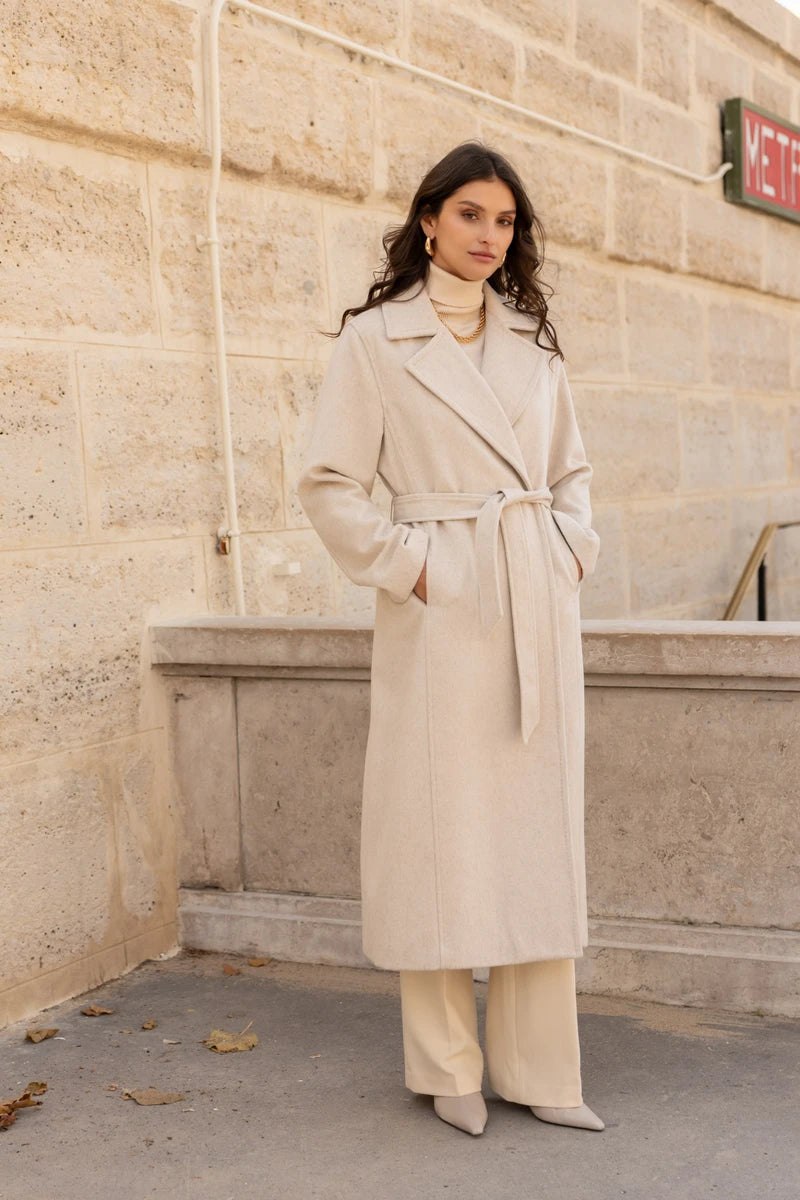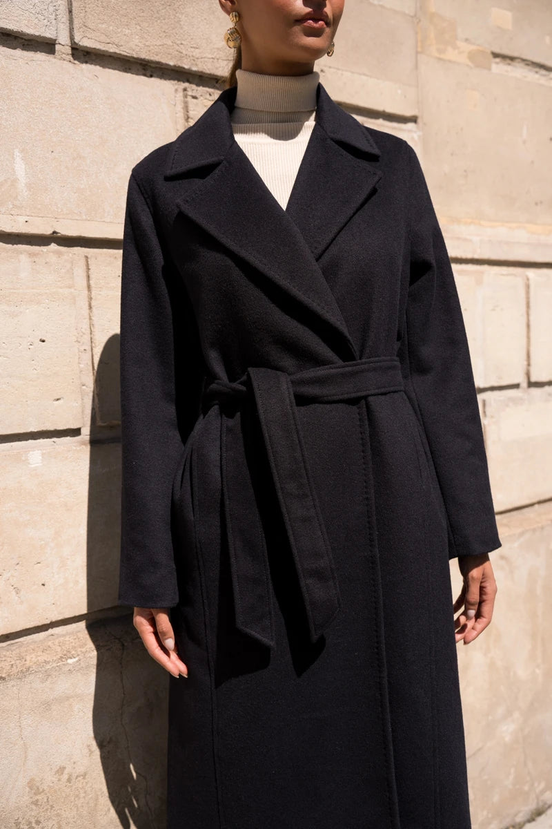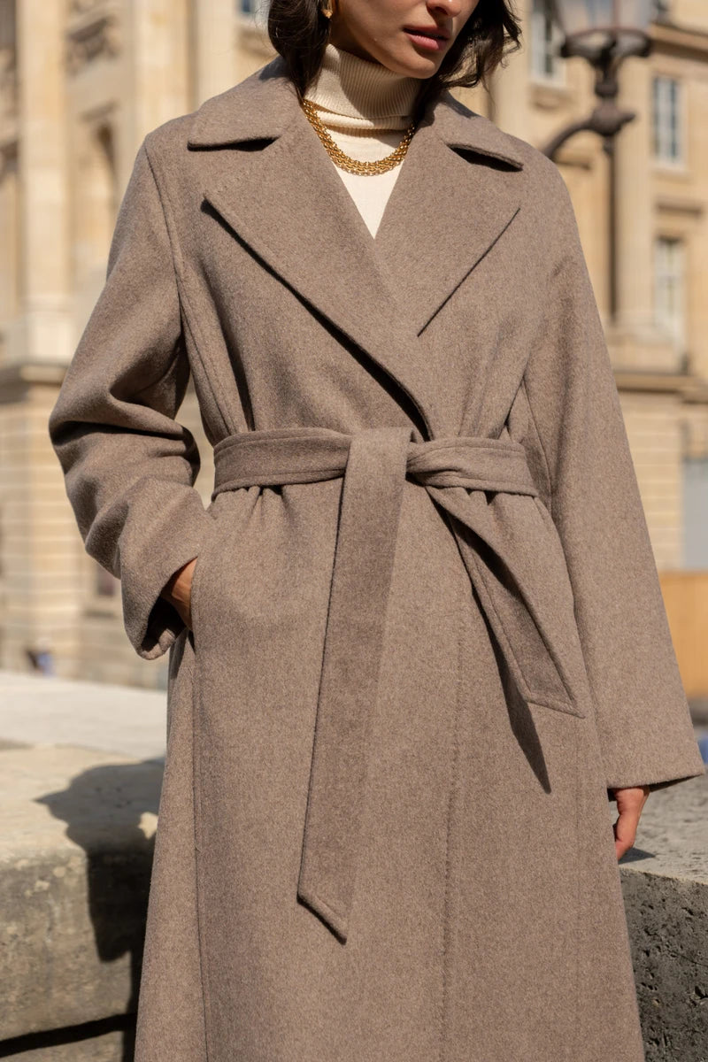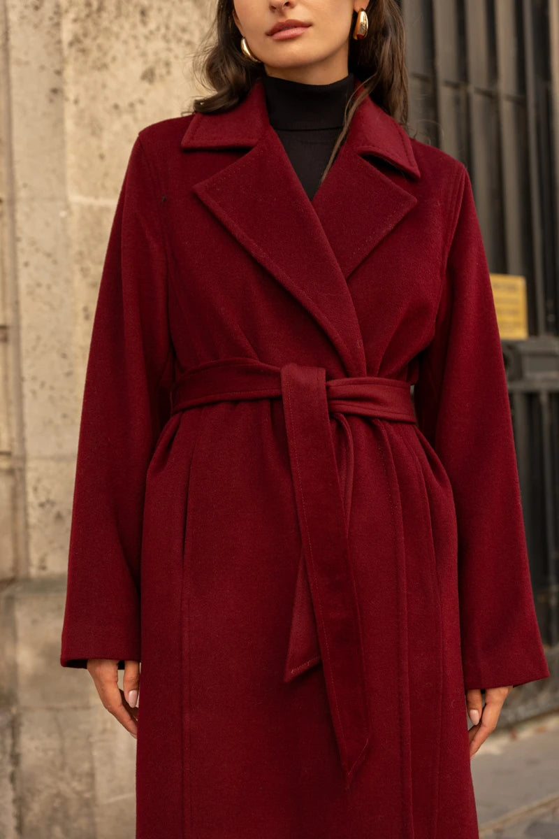 Langer Wollmantel mit Gürtel