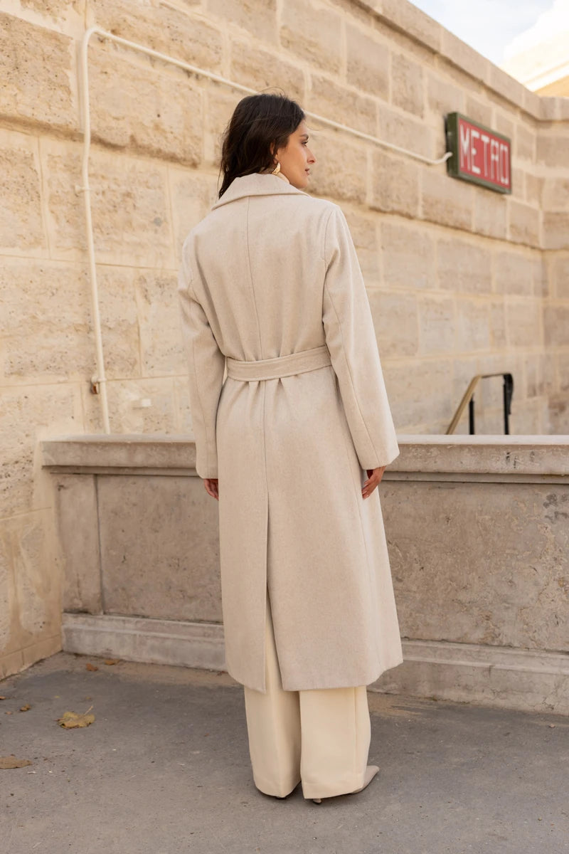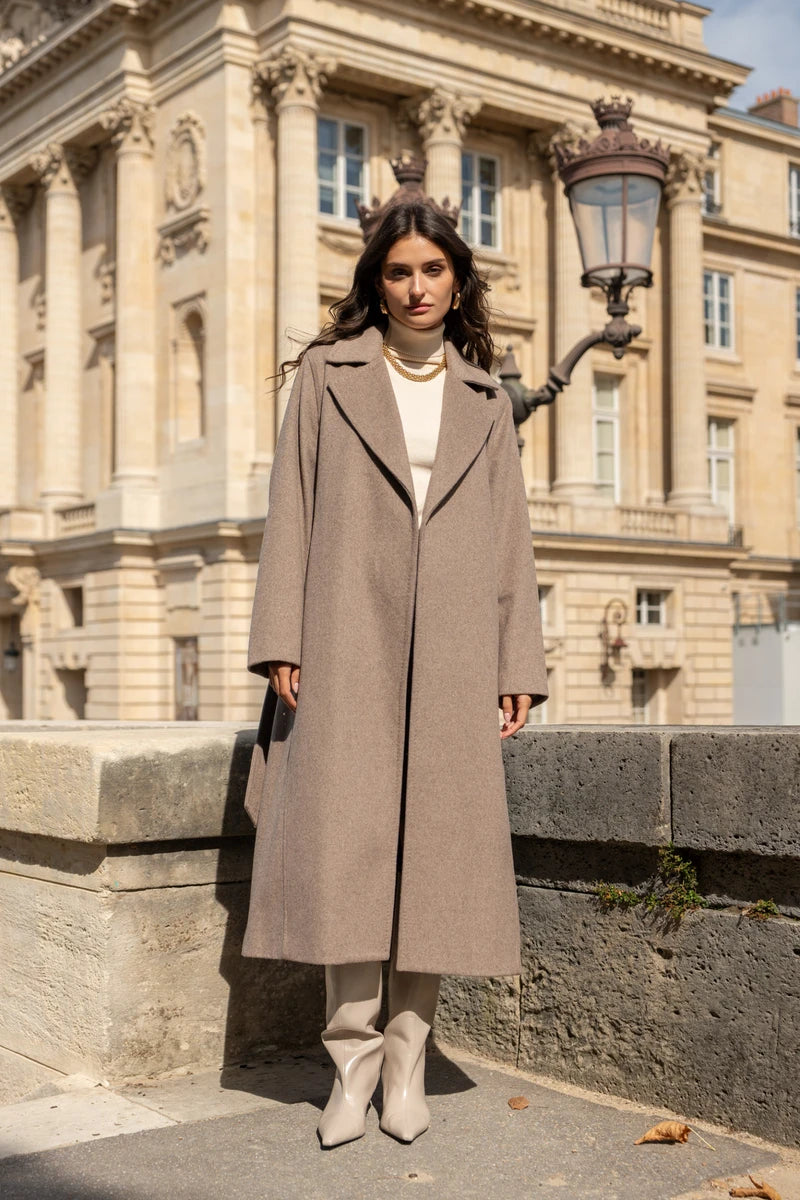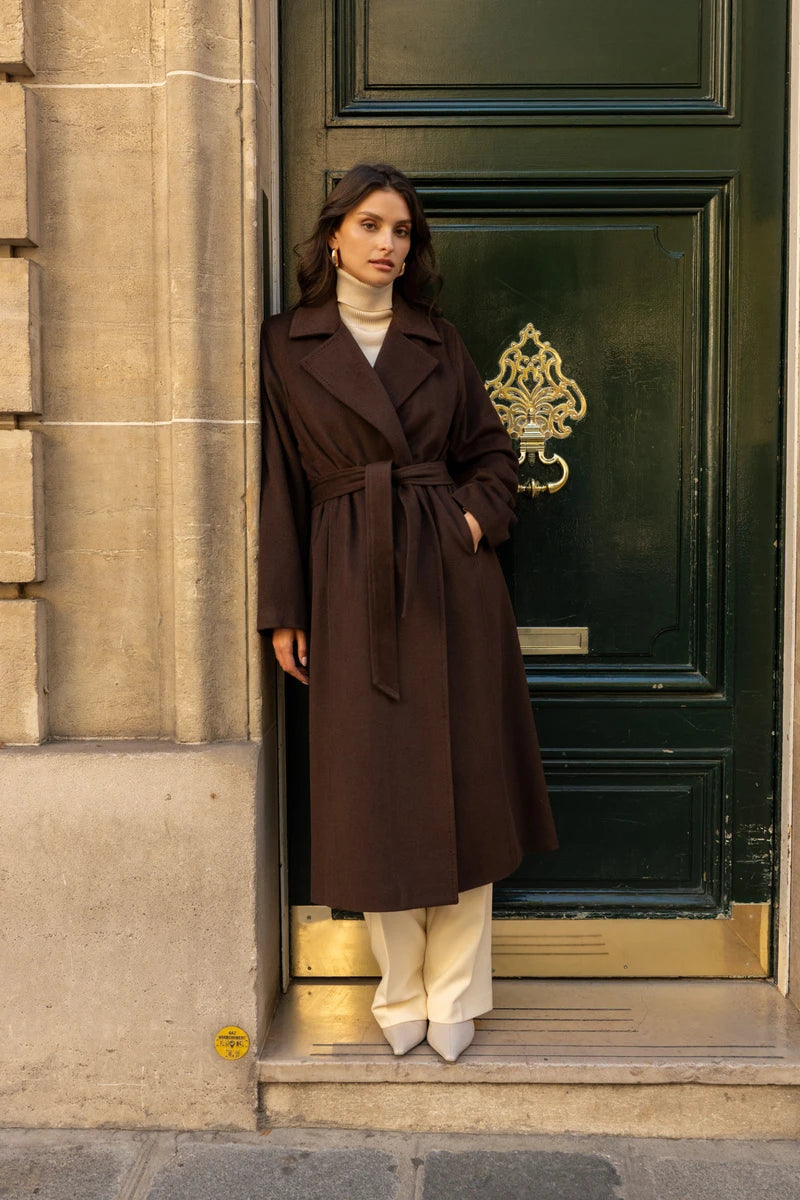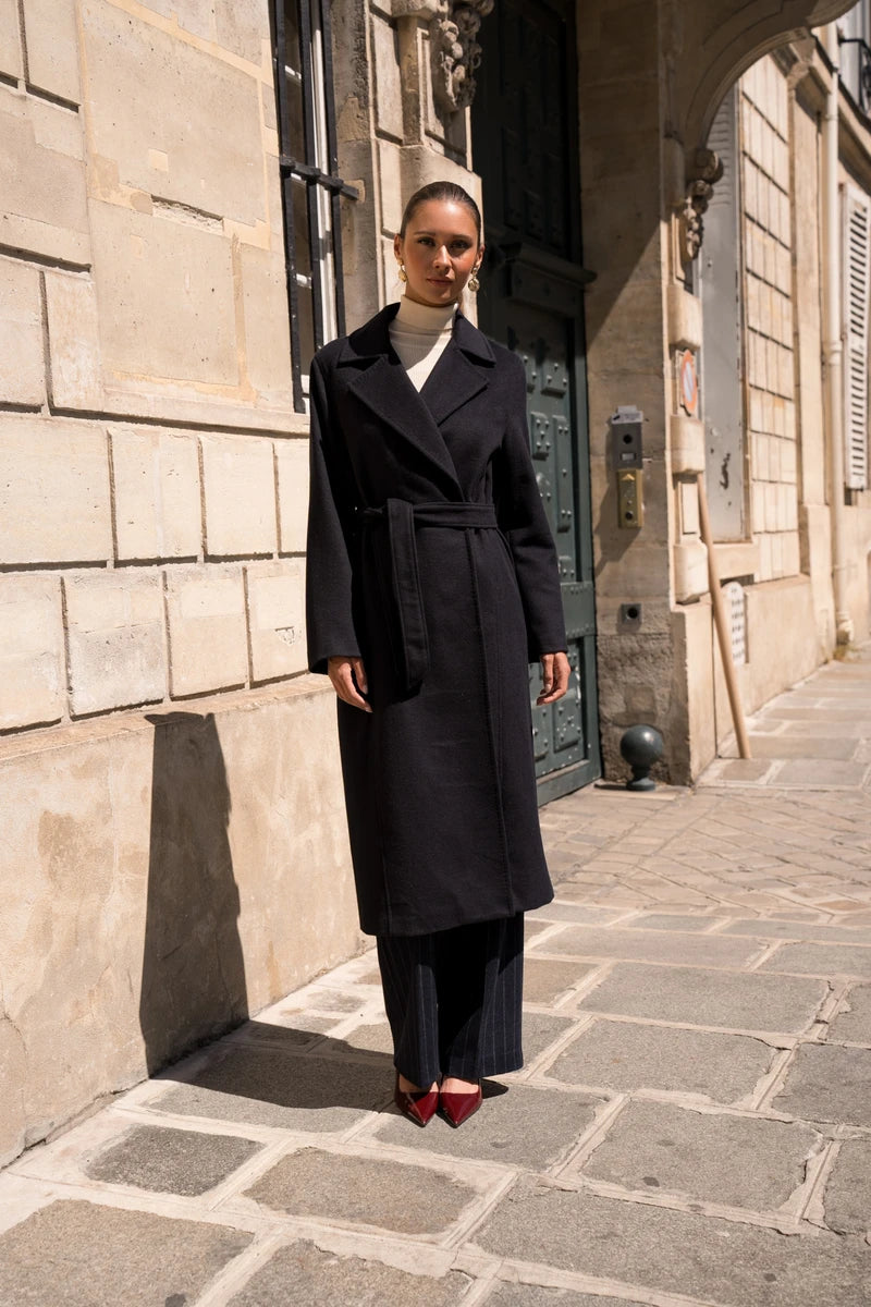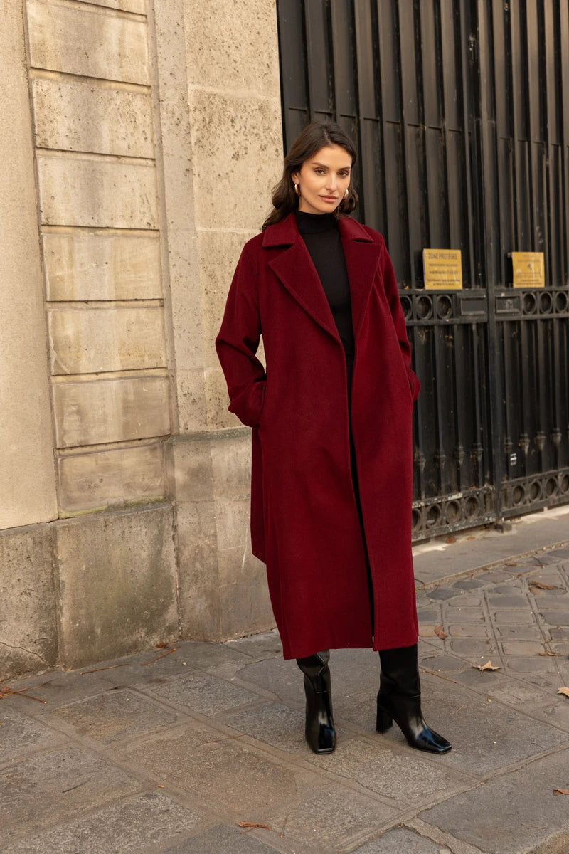 Langer Wollmantel mit Gürtel