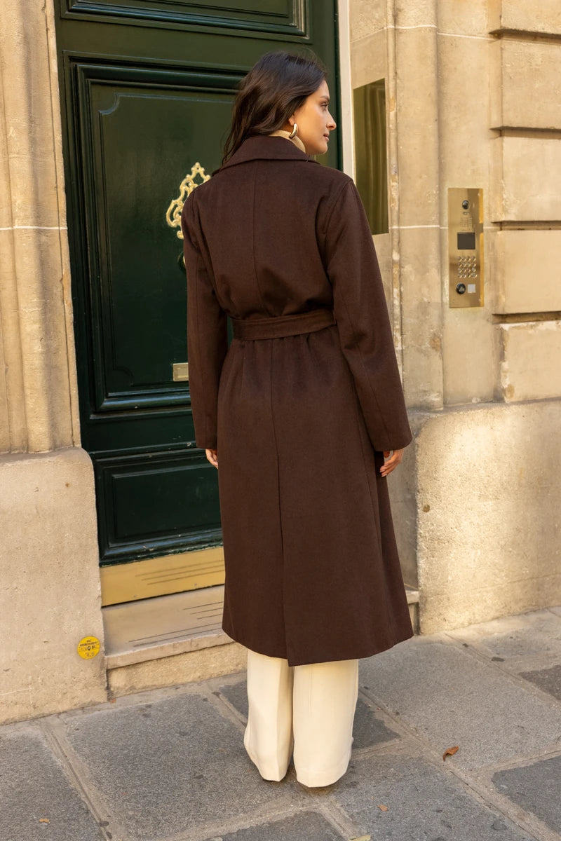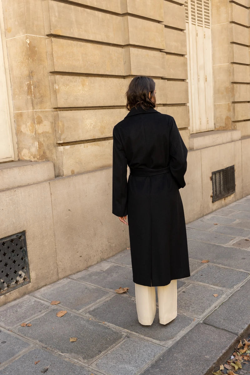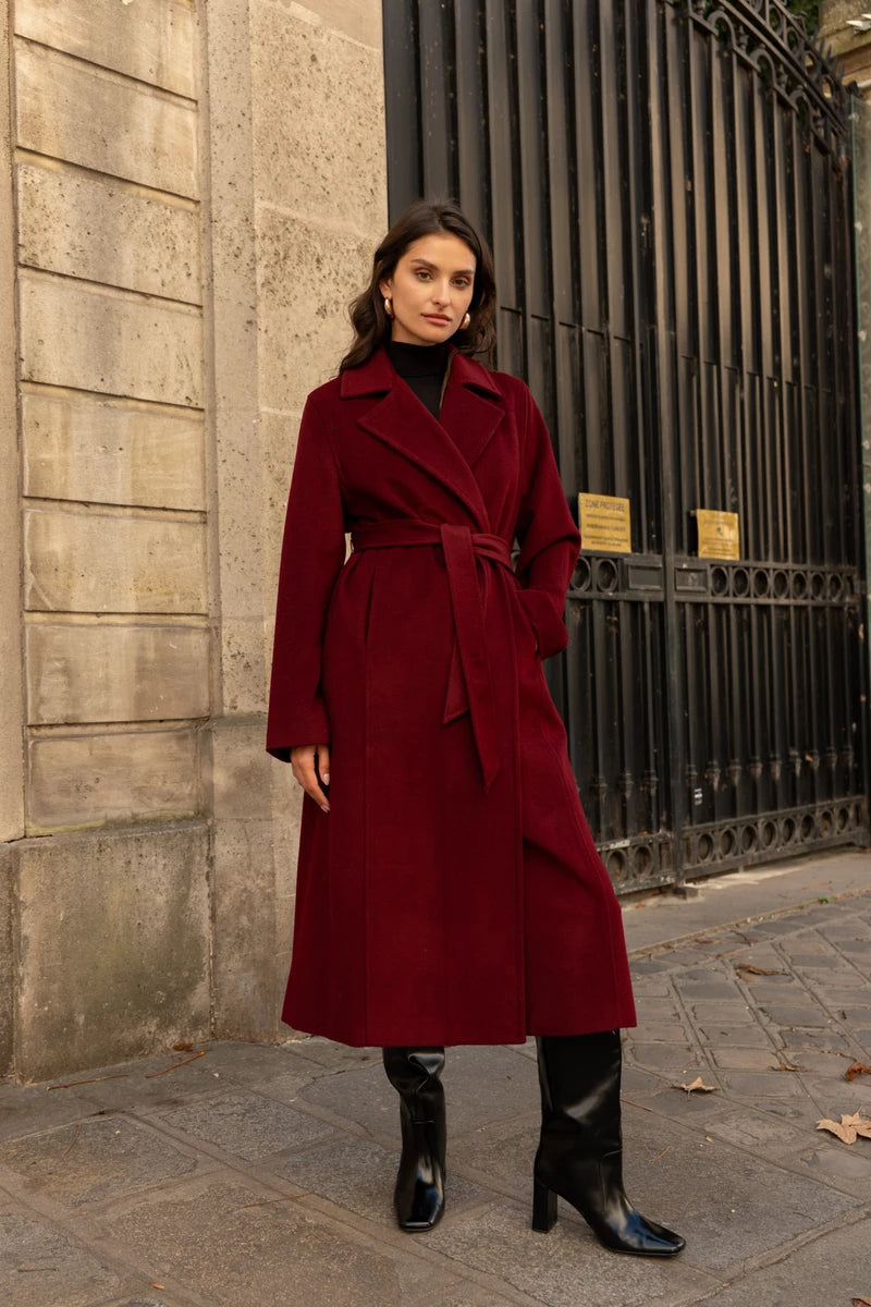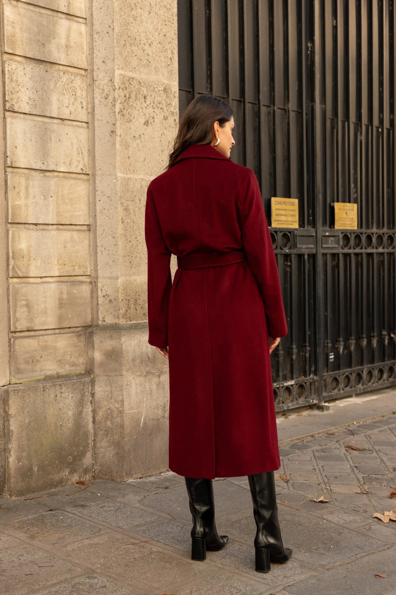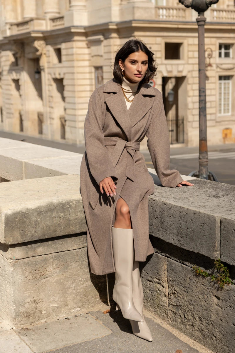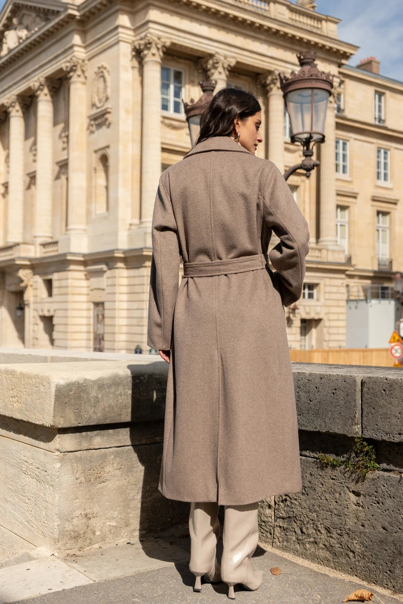 Langer Wollmantel mit Gürtel