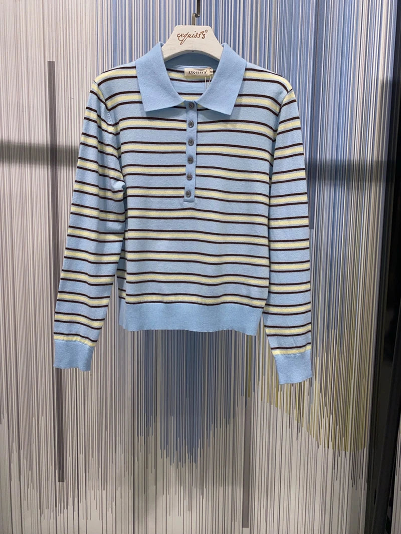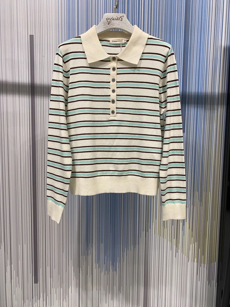 Dieser Langarm-Pullover ist die perfekte Symbiose aus Tradition und Trend. Das klassische Streifendesign wird durch die elegante Knopfleiste am Polokragen veredelt, die dem Piece eine exklusive Note verleiht. Die Knöpfe setzen einen glänzenden Akzent und machen den Pullover zu einem echten Key-Piece. Ob im Büro oder beim Wochenend-Brunch – dieser Pullover verspricht einen souveränen Auftritt mit dem gewissen Extra an Eleganz.