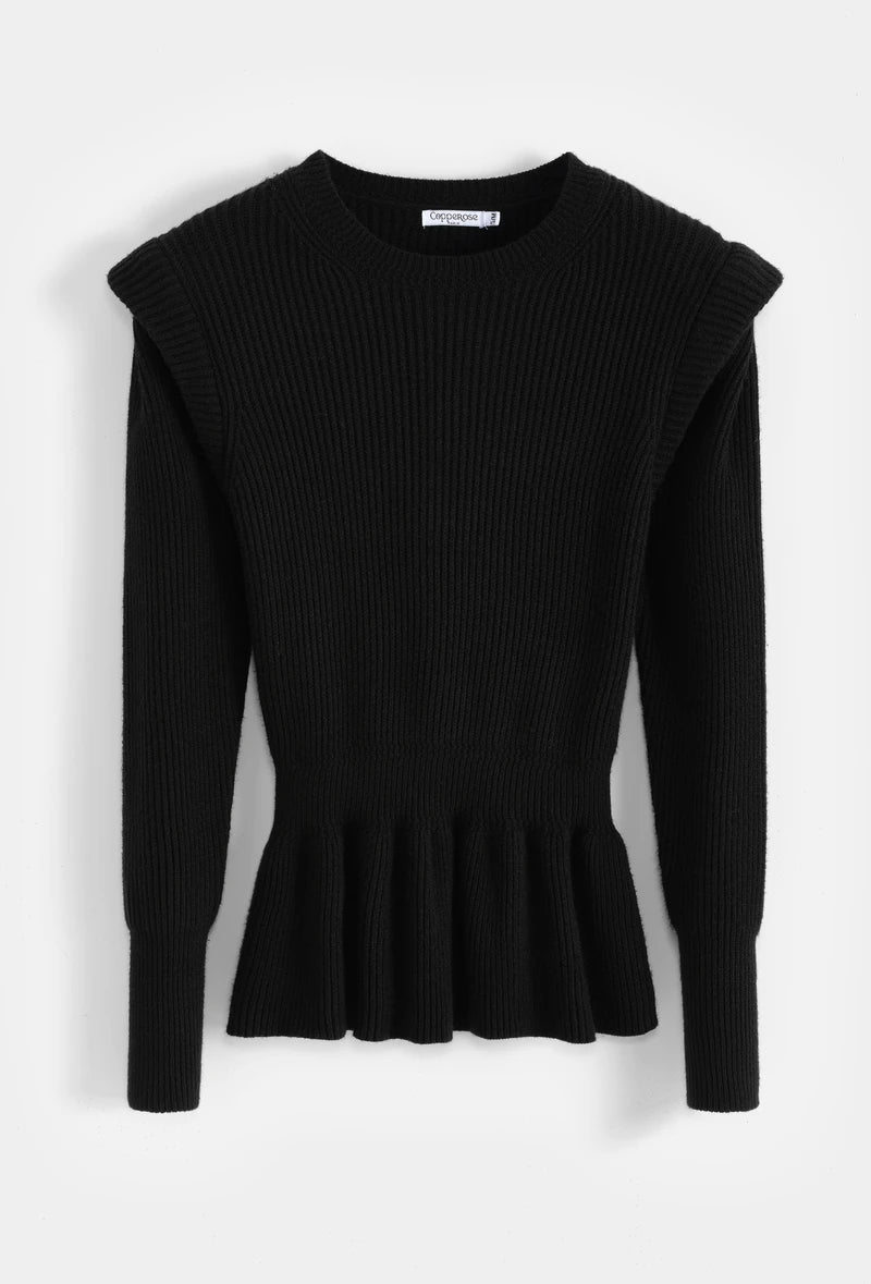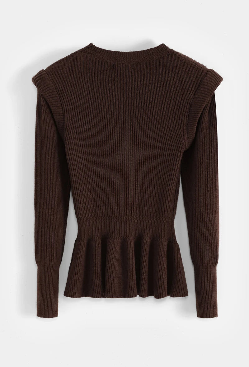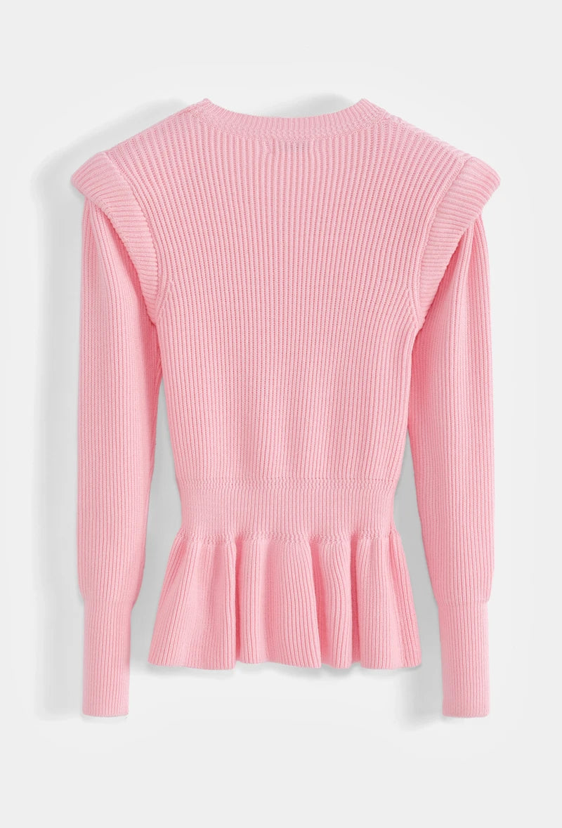 Dieser fein gerippte Strickpullover ist die perfekte Mischung aus Eleganz und modernem Stil. Er überzeugt mit einem schmeichelhaften, figurbetonten Schnitt, der die Silhouette perfekt in Szene setzt. Die feinen Schulterpolster sorgen für eine strukturierte Optik und ein modisches Statement. Der klassische Rundhalsausschnitt und die langen Ärmel mit eng anliegenden Bündchen unterstreichen den zeitlosen Look, während der leicht ausgestellte Saum für einen weichen Fall sorgt. Ein vielseitiges und elegantes Stück für deine Garderobe.