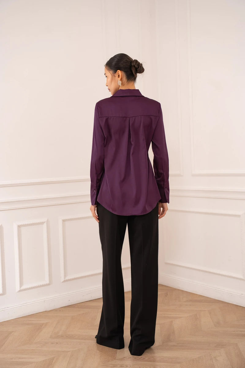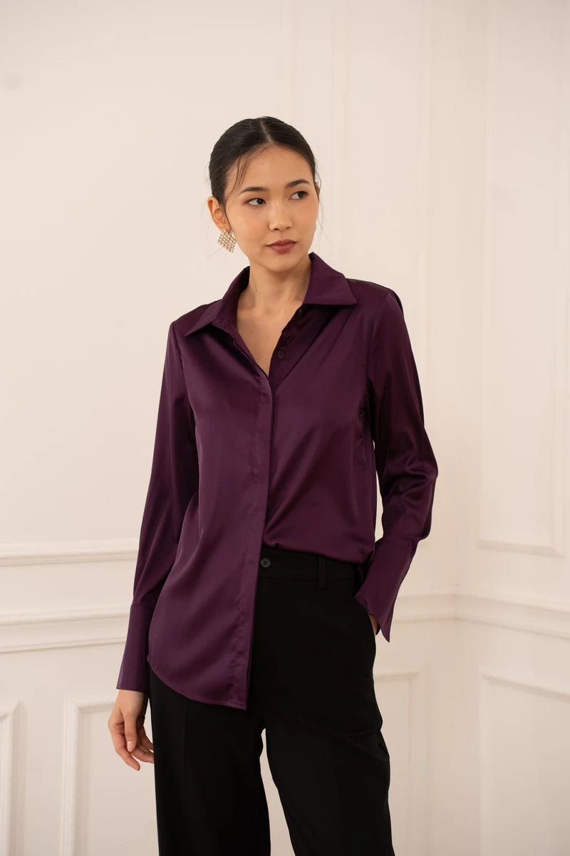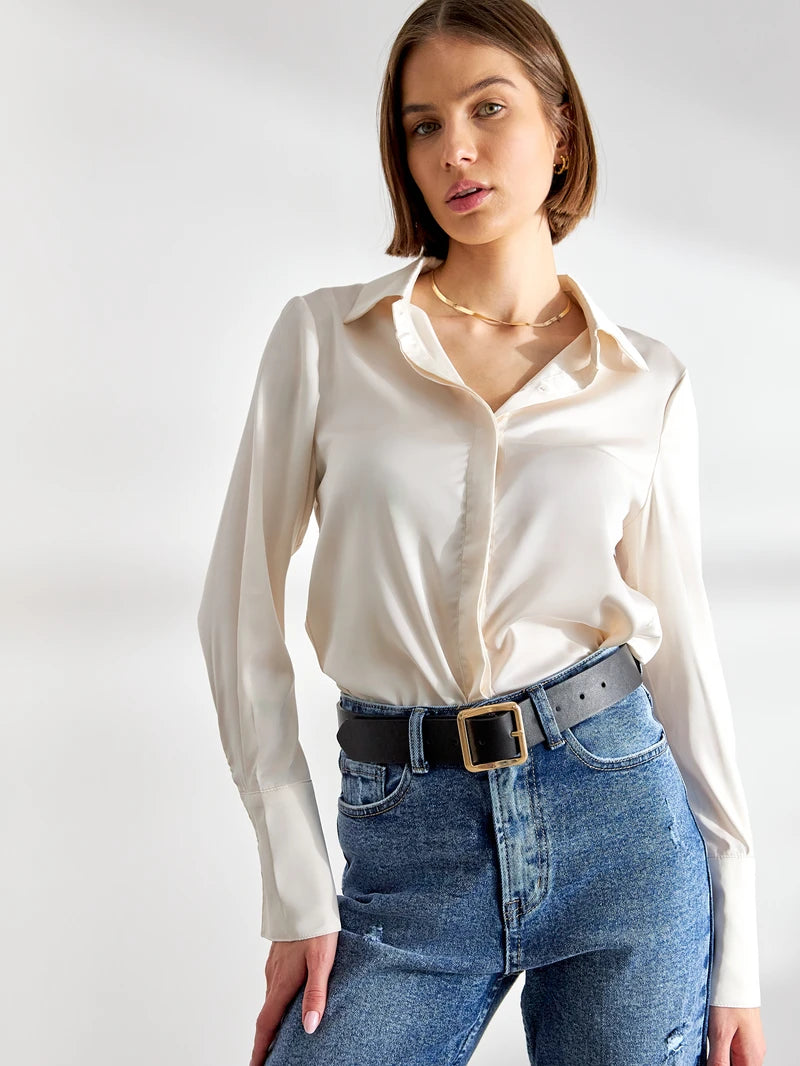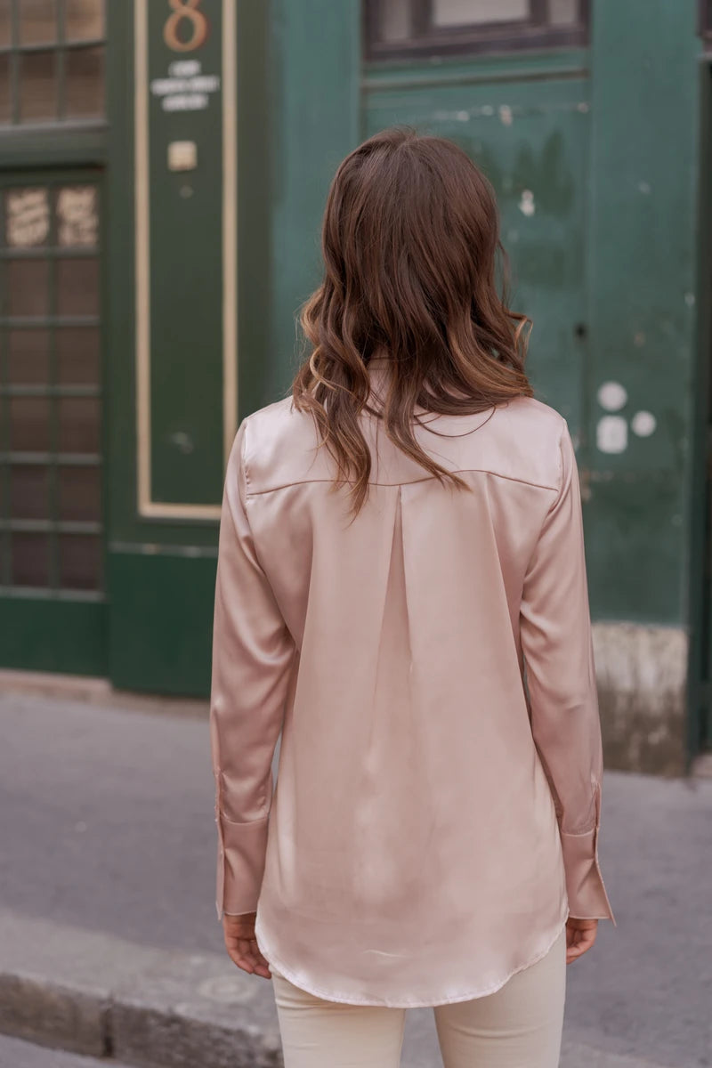 Verleihen Sie Ihrem Outfit ein luxuriöses Upgrade. Dieses Hemd besticht durch sein seidiges Satin-Finish, das das Licht sanft einfängt und für eine edle Optik sorgt. Der klassische Reverskragen verleiht dem Design eine strukturierte, aber dennoch entspannte Note. Schimmernde Satin-Optik für einen Hauch von Glamour. Klassischer Reverskragen und durchgehende Knopfleiste. Lange Ärmel mit elegantem Fall. Ideal in Kombination mit einer High-Waist-Stoffhose oder einem schmalen Bleistiftrock.